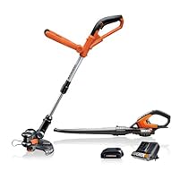 the trimmer works great for me. It might not be as powerful as gas operated ones but it does the job for me. The blower: I was pleasantly surprised about its performance. I just bought the package because it was only $50 bucks more. I am glad I did. It works great for cleaning the trims from the sidewalk which is what is advertised to do. It does not have enough power to blow leaves laying in the grass but that is not what I need so for me it was a good choice. The bettery run time is about 10 min for the blower and about 20 to 30 min for the trimmer. My only complain (this ... Comes with one WG151 string trimmer, one WG540 blower, two wall mounts, two extra spools for trimmer, one 30 minute quick charger, and one 18 volt lithium-ion battery Limited 2-year warranty Lightweight, always ready-to-go and eco friendly,