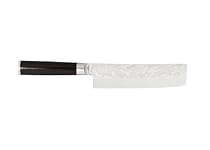 A useful addition to any cutlery collection, this versatile Usuba knife by Shun features a substantial blade that measures 6-1/2 inches long. Use the knife for slicing and peeling vegetables or garnishes. It also works well for creating the perfect vegetable slices for sashimi. Like other knives in the Shun Pro line, the knife features a marvelous graffiti-etched blade made of pure high-carbon VG10 steel, which holds a razor-sharp edge longer than other premium steels. The blade's acid-etched design is slightly different with each style of knife, while consistently and cleverly incorporating the Shun logo neatly into the overall arrangement for a distinct and professional look. The knife also comes equipped with a D-shaped PakkaWood handle for a comfortable, ... D-shaped PakkaWood handle; washing by