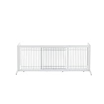 I bought this high gate in the small and large sizes to keep our cats away from certain doors. I put it by our front door so it would make it harder for them to even think of running out when we opened the door. It is easy for adults to step over. So far the cats haven't even tried to jump them. I like that they are adjustable and solid and very nice looking.0 of people found the following review helpful. 39.8-71.3-inch by 17.7-inch by 20.1-inch Wood Freestanding Pet Gate, Large, Origami White Low enough for people to stride over; beautiful hardwood finish Measures