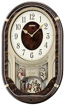 Very nice wall clock which plays music on the hour plus has ornaments that turn continuously. I like the overall size and the clock face is not too small. Good value for the price and quality of Seiko products. Makes a nice gift also.See all 2 customer reviews... In addition, it includes a volume control, demonstration button, on/off switch Four "AA" batteries Dimensions are 17 1/4" x 10 1/2" x4" Adorned with majestic moving figurines that turn continuously, this wall clock will add character to wherever it is displayed 6 "Pastoral", Morning from Peer Gynt, La Traviata