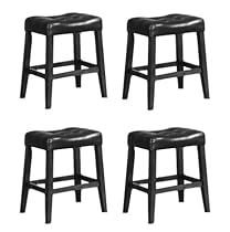 I ordered these becasue the price was right and I needed them for a rental property for a couple of years. When my husband got them assembled I was BLOWN AWAY. THEY ARE GORGEOUS, STURDY and COMFORTABLE (oversized even allowing for a well endowed rump). In addition so far they have been strudy enough that my childern 2 and 5 have not manage to turn them over when climbing and hanging off sides. I have had them for almost 2 months. They went BEYOND MY EXPECTATIONS. I would highly reccomend them!!!1 of 1 people found the following review helpful. These are 4 new Saddle Back barstools! They have a black seat and are 24" tall The cushion is black and has a similar feel as leather