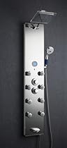 AKDY AZ787392M accuracy and visibility * Unique massage panel is designed for flat wall installation * Hot/cold integrated Pressure Balance valve controls * Comes with chrome-plated brass hose * Standard plumbing connection* Reinforced pipes on back* Overhead shower and flexible hand shower * The minimum pressure required is 29 psi and maximum pressure required 72.7 psi This shower panel adds a super modern touch to your bathroom decor, it is sure to become the focal point of your bathroom LED temperature indicator - battery operates and delivers unsurpassed accuracy and visibility 8 adjustable jet nozzles for water massage(fog/fog & massage/massage). ... »»